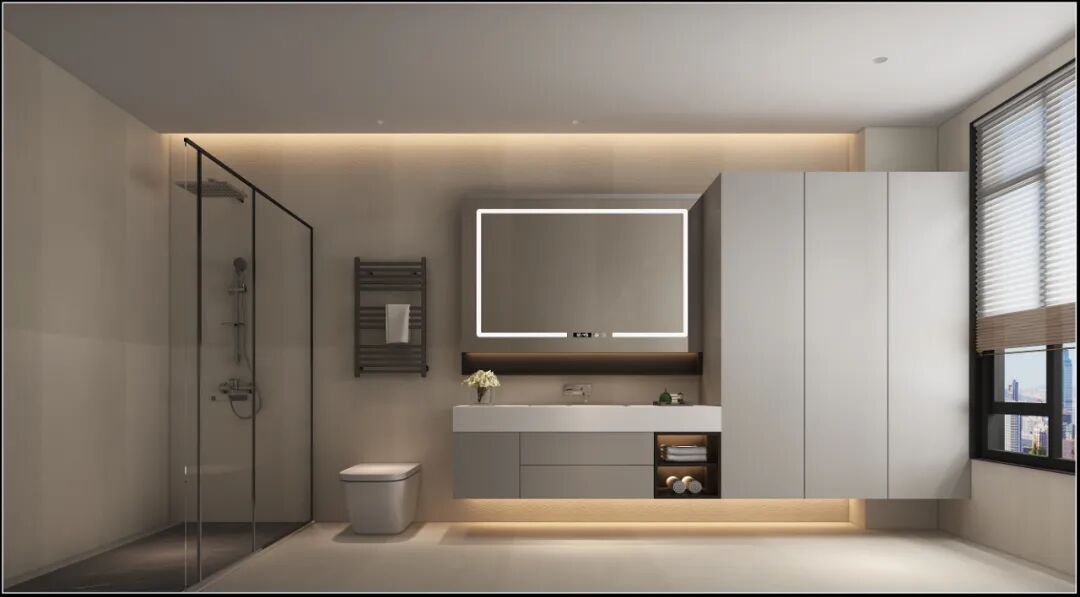 加长镜柜的设计,在提升储藏容量的同时横向扩大整个空间的视觉感。
